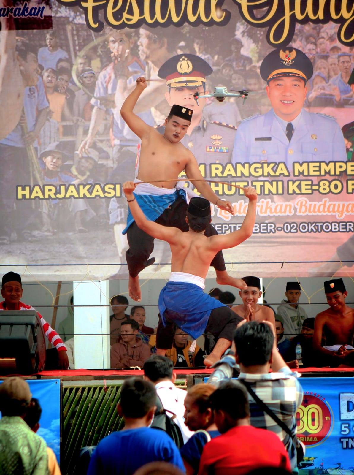 Festival tahun ini menampilkan puluhan pertandingan ronde, masing-masing berlangsung lima menit dengan tiga hingga lima kali adu cambukan, diawasi wasit.