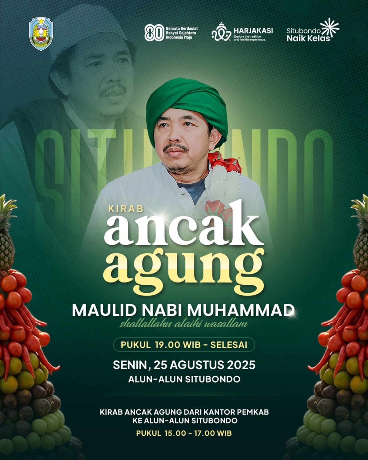 Tradisi Kirab Ancak Agung merupakan warisan budaya turun-menurun di Situbondo yang menggabungkan nilai spiritual dan kebersamaan dalam memperingati kelahiran Nabi Muhammad SAW.
