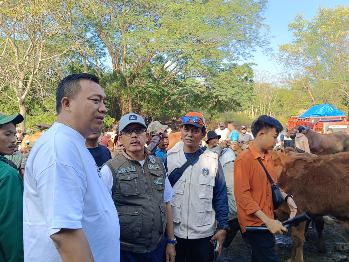 SITUBONDO - Bupati Situbondo, Yusuf Rio Wahyu Prayogo mengunjungi Pasar Hewan Sabtoan di Desa Sumberkolak, Kecamatan Panarukan, Sabtu, 10 Mei 2025. Tujuannya untuk memantau harga hewan qurban Hari Raya Idul Adha 2025.SITUBONDO - Bupati Situbondo, Yusuf Rio Wahyu Prayogo mengunjungi Pasar Hewan Sabtoan di Desa Sumberkolak, Kecamatan Panarukan, Sabtu, 10 Mei 2025. Tujuannya untuk memantau harga hewan qurban Hari Raya Idul Adha 2025.