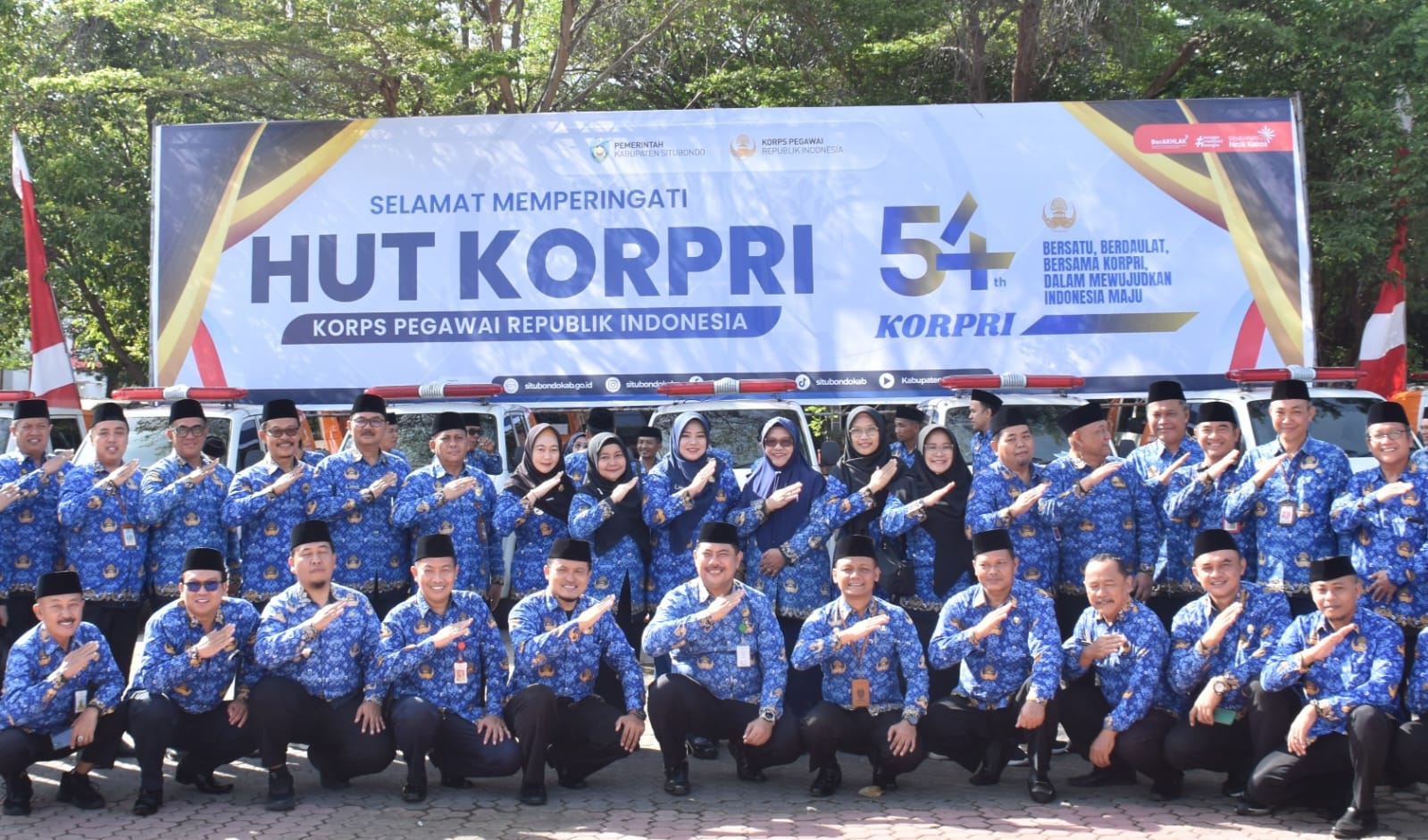 SITUBONDO - Wakil Bupati Situbondo, Ulfiyah, memimpin Upacara Peringatan Hari Ulang Tahun (HUT) ke-54 Korps Pegawai Republik Indonesia (Korpri) yang diselenggarakan di halaman belakang Kantor Pemerintah Kabupaten Situbondo.
