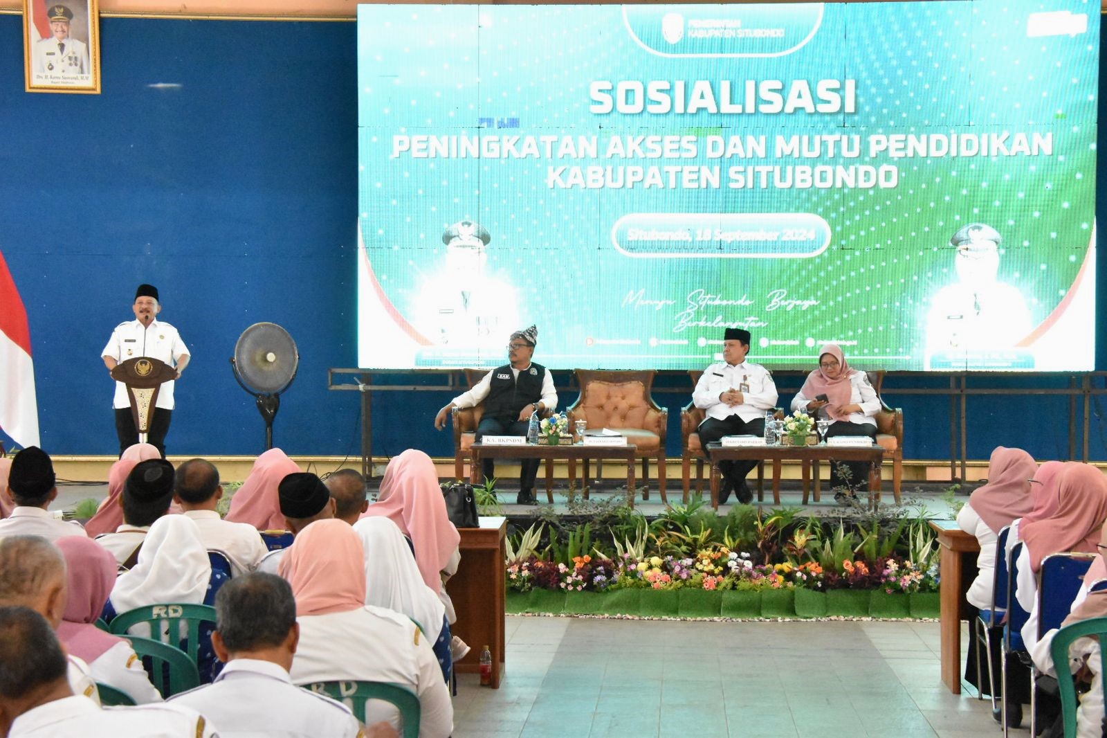 SITUBONDO - Bupati Situbondo, Karna Suswandi, menghadiri acara rapat koordinasi (Rakor) pendataan registrasi sosial ekonomi (Regsosek), Selasa (20/9/2022). Acara tersebut berlangsung di Gedung Serbaguna, Wisata Bahari Pasir Putih, Kecamatan Bungatan.
